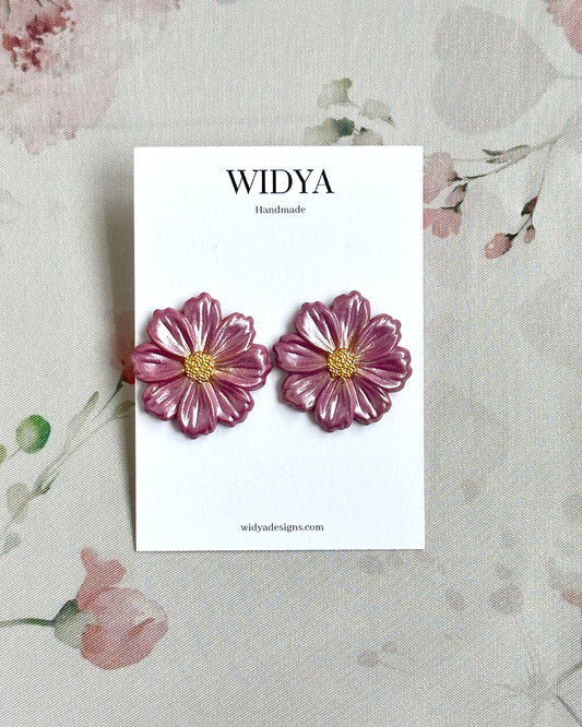 Morning Glory Flower Earrings in White & Purple - September Flower