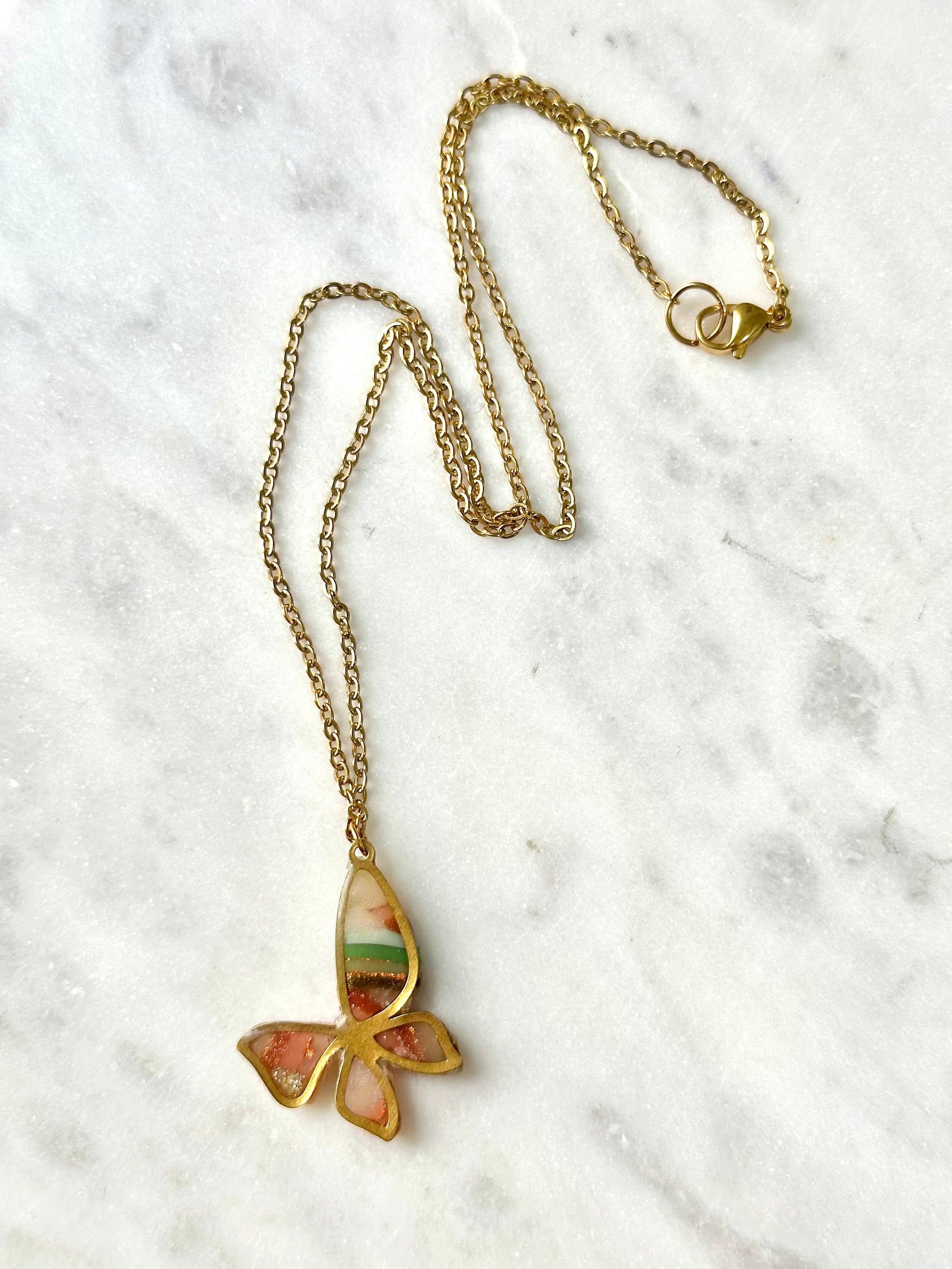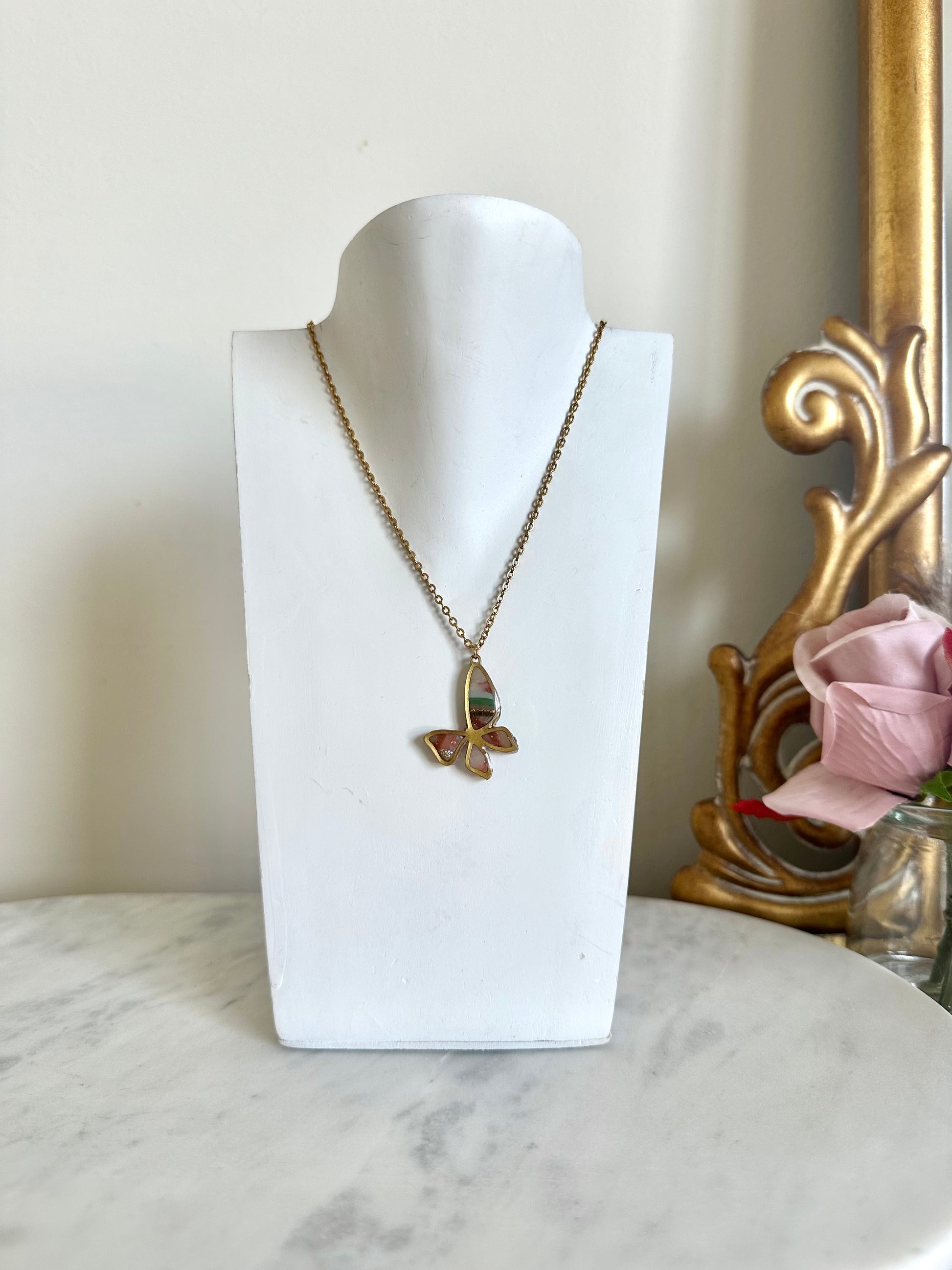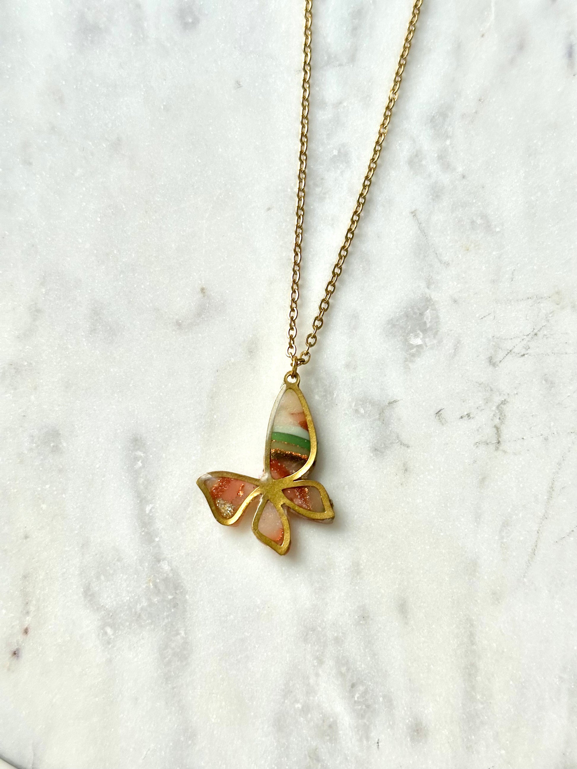 This stunning handmade clay necklace captures the intricate beauty of natural agate. Handcrafted layer by layer with earthy tones and touches of gold, each piece mimics gemstone bands and shimmering depths. Lightweight yet elegant, they bring sophisticated artistry to any look, a unique, statement accessory crafted just for you.