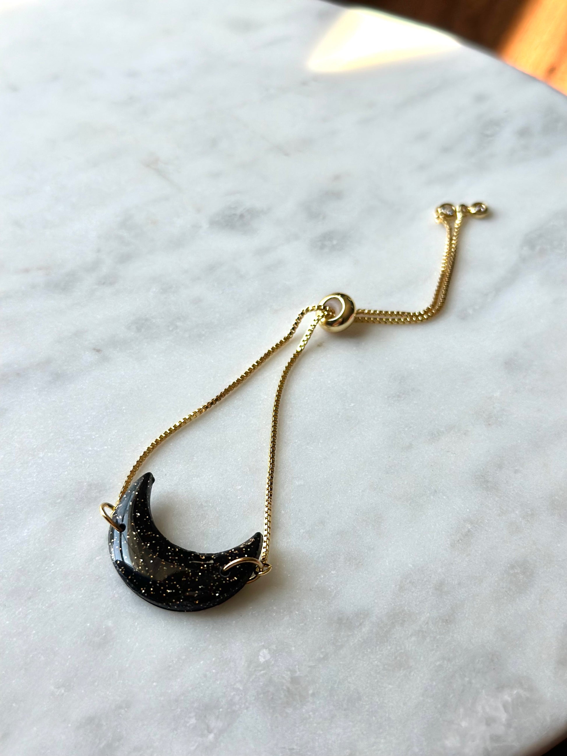 Delight in the charm of our black galaxy star bracelet, handcrafted from polymer clay to look just like real gemstones! This adorable accessory brings a magical sparkle to your wrist, perfect for adding a touch of whimsy and elegance to any outfit.