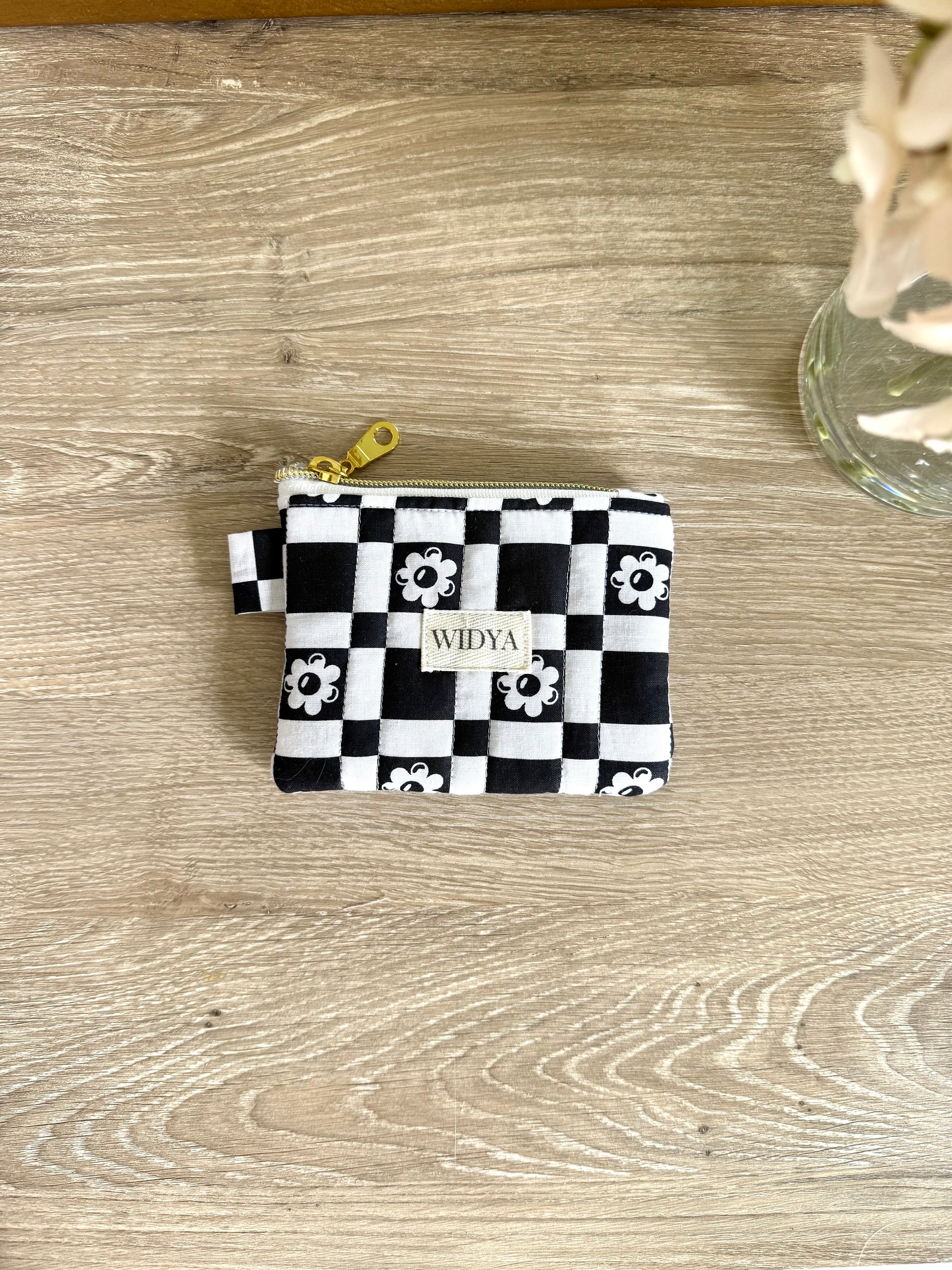 Bold and stylish, this handmade keychain pouch features a black and white floral print, a perfect match for the high energy spirit of the Indy 500 or those who like simplicity and cuteness. Made from 100% cotton and fully lined for durability, it's the perfect size for storing small items like cash, credit cards, lip balm, earbuds, or loose change. Clip it onto your keys, bag, or backpack for a charming and functional touch wherever you go.