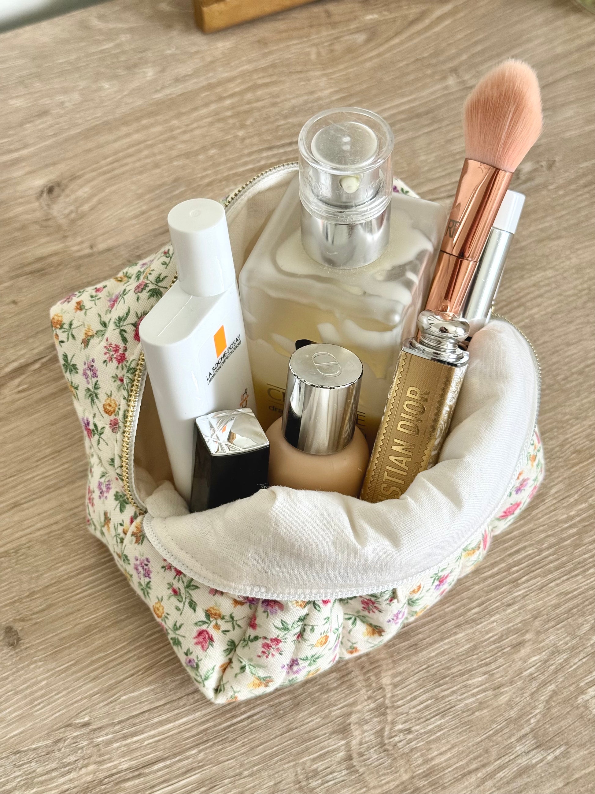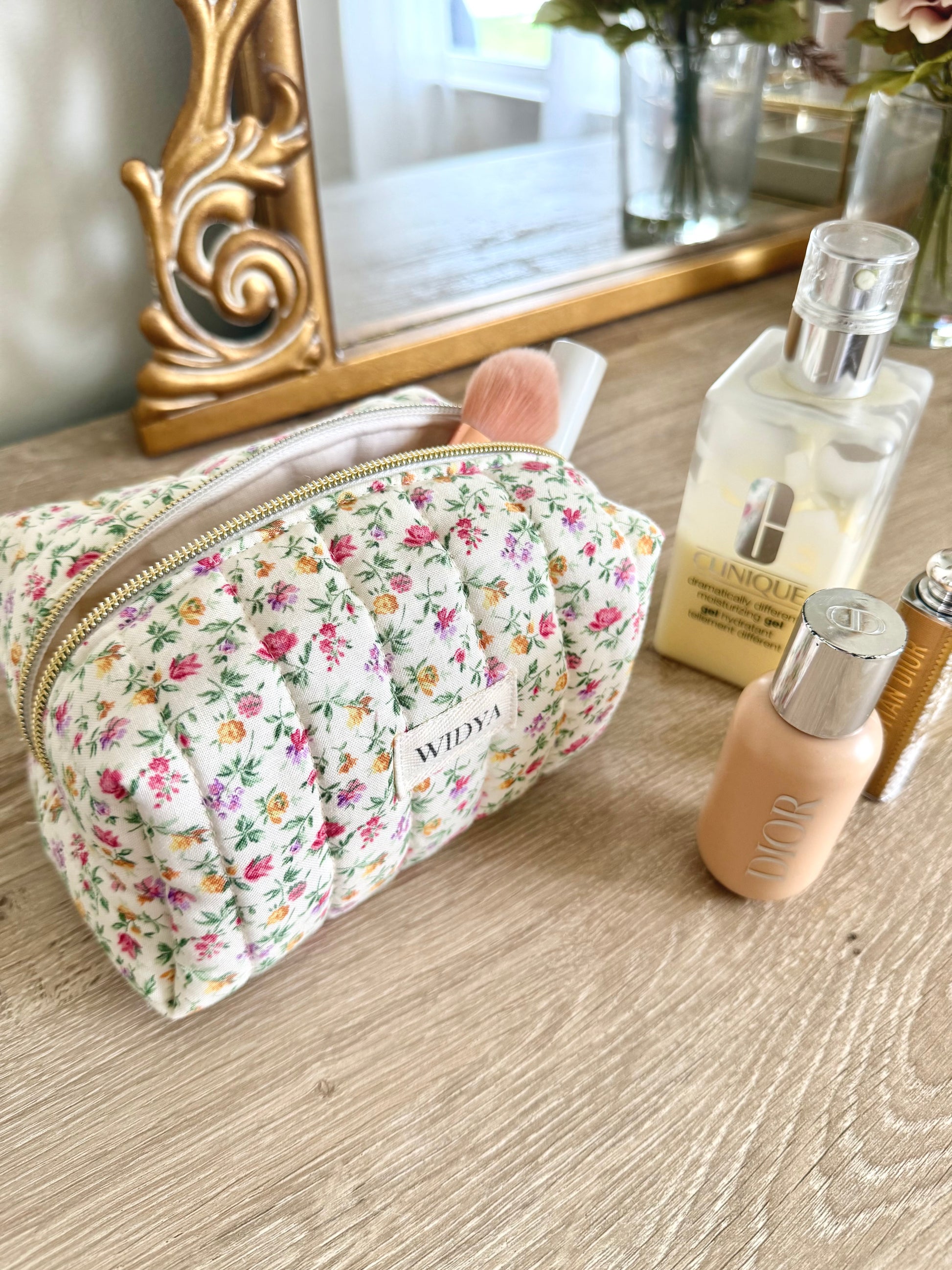 Soft and understated, this dainty floral print in beige brings a warm, natural charm to your daily essentials. The delicate floral pattern feels effortlessly graceful and pairs beautifully with any style. Perfect for carrying your makeup or small treasures with quiet elegance.