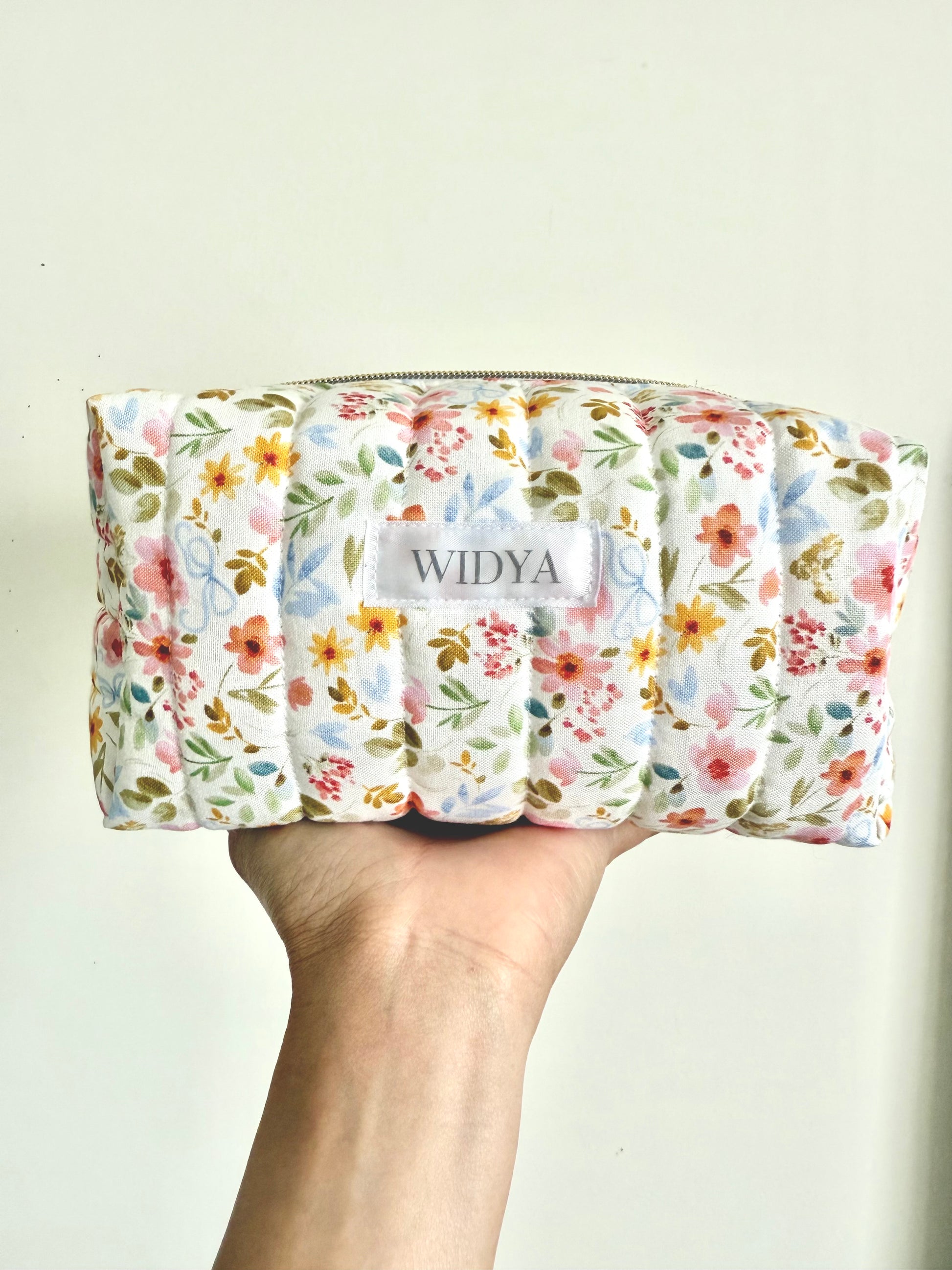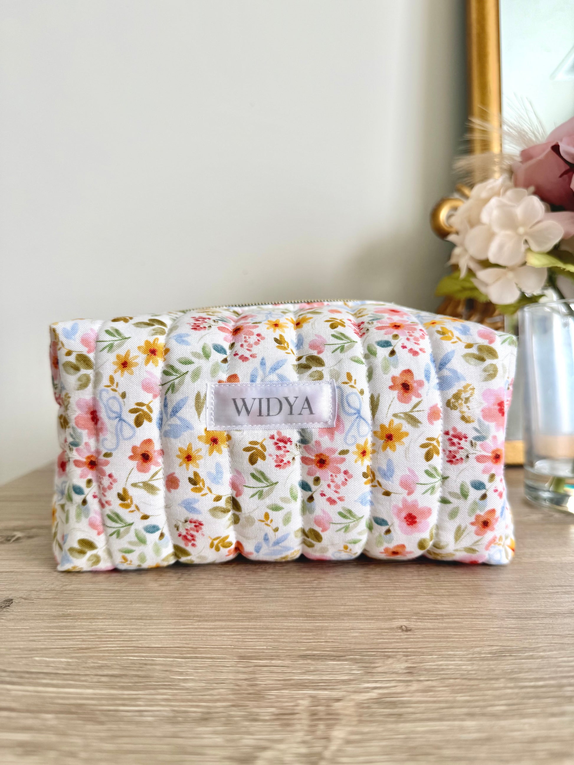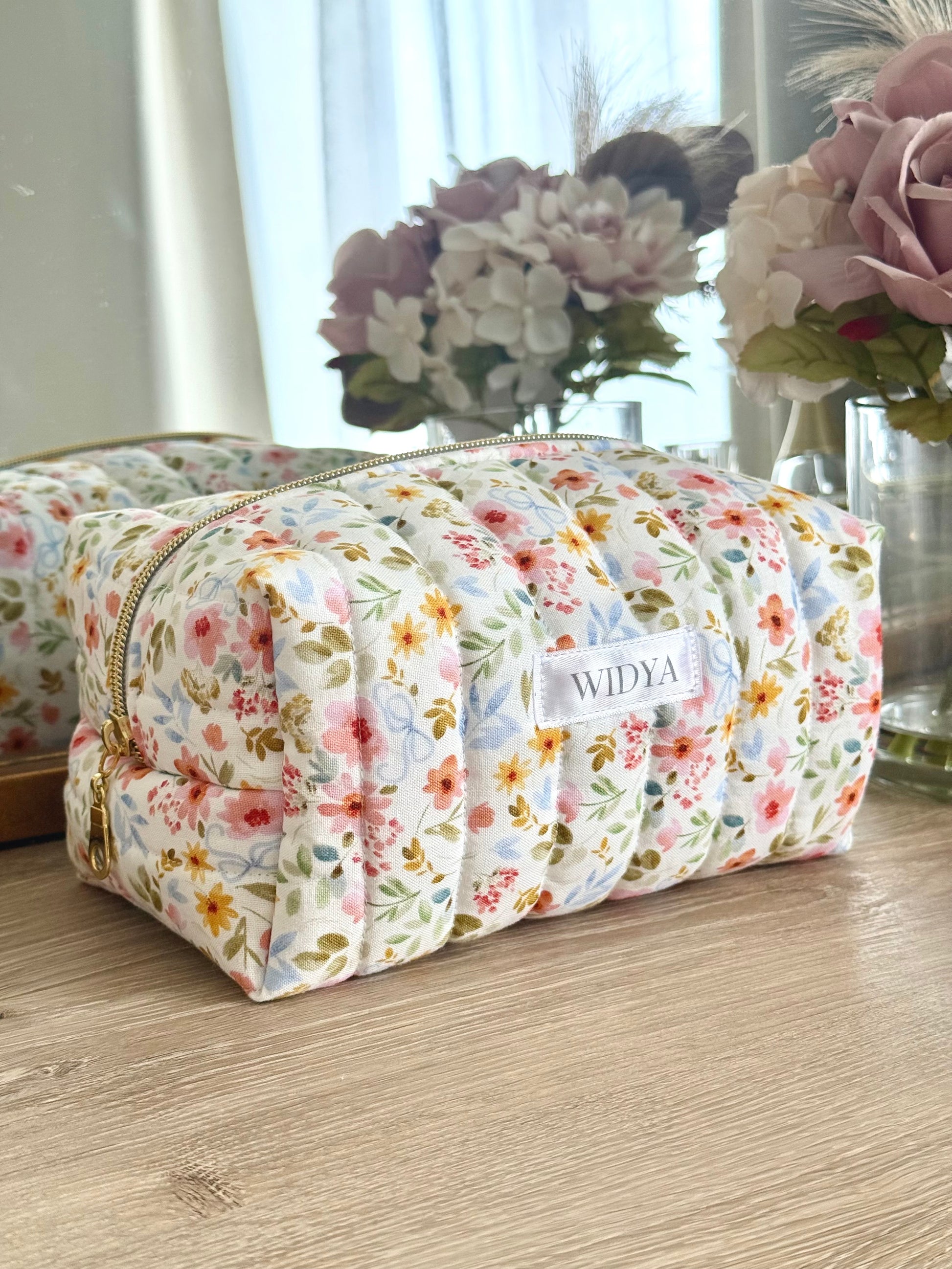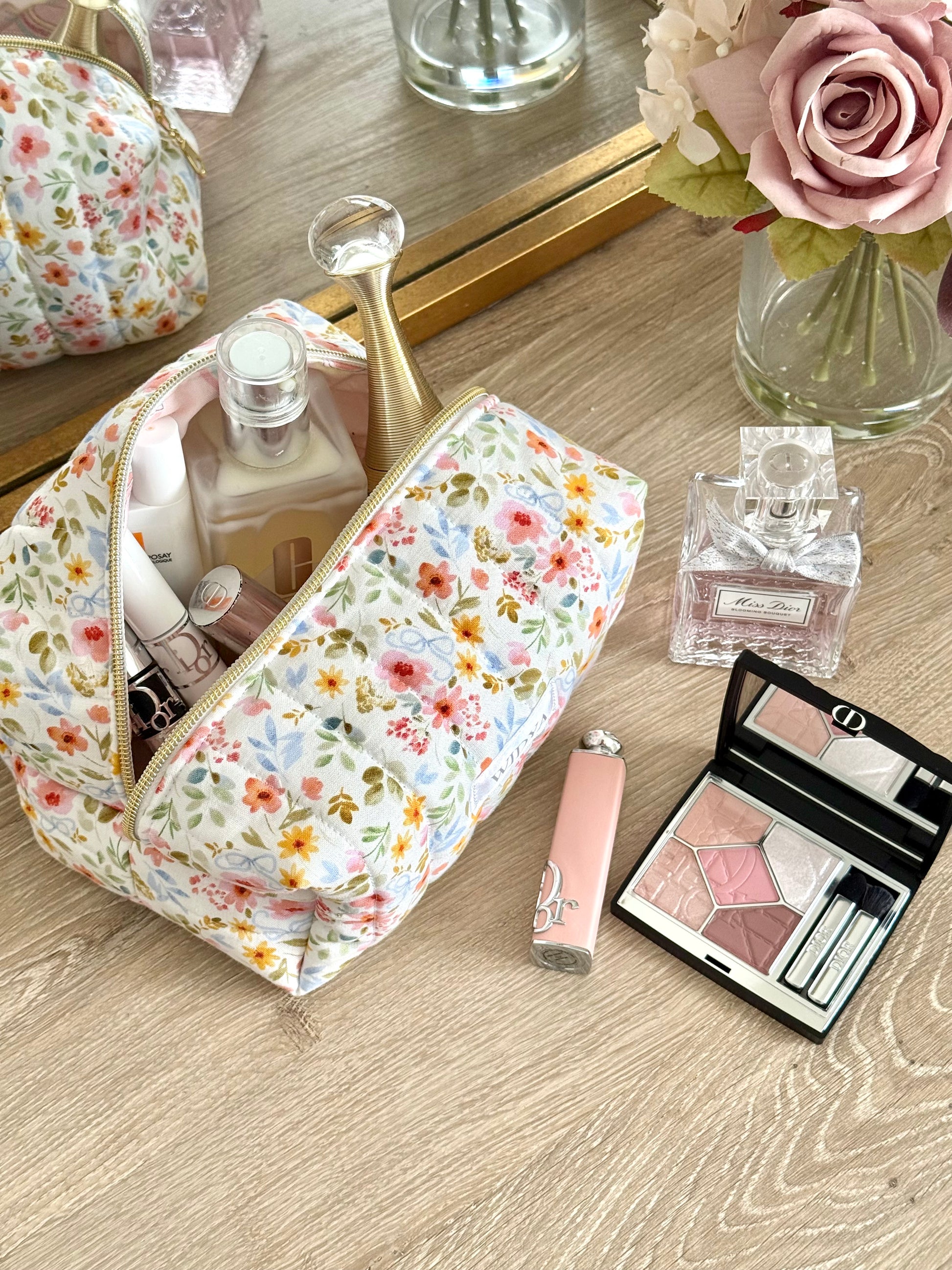 Sweet and full of charm, this flower meadow makeup bag with dainty blue bows adds a soft, playful touch to your everyday. The floral and bow print feels fresh and feminine, perfect for anyone who loves pieces that are both pretty and thoughtfully handmade. Whether you're getting ready at home or packing for a weekend away, it's the kind of bag you'll reach for over and over again.