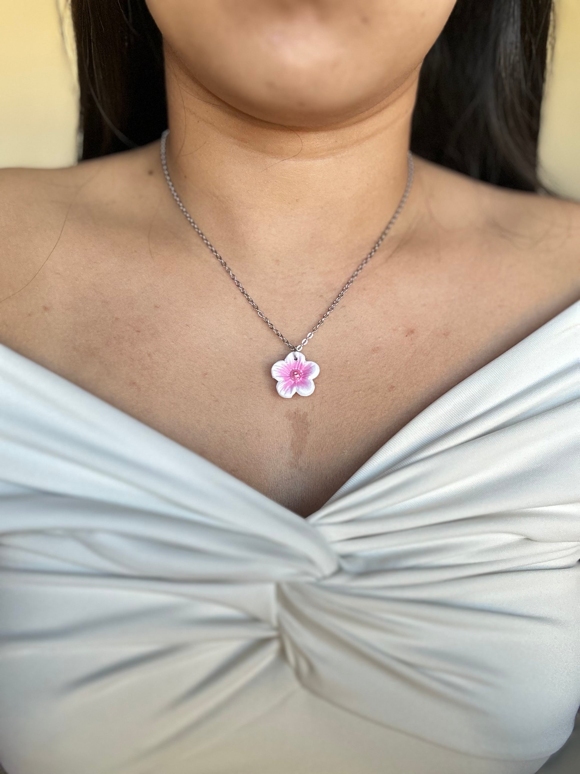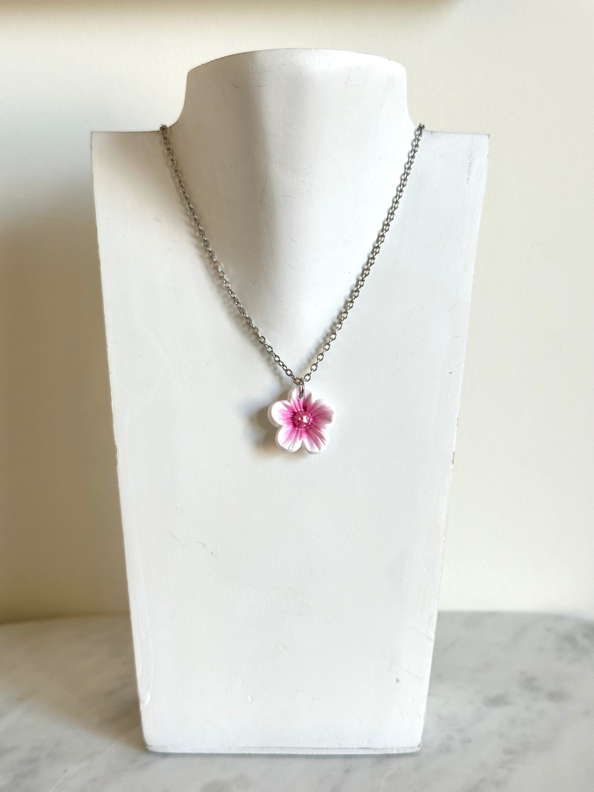 Brighten your day with our white & pink flower necklace, crafted from polymer clay to look strikingly realistic. These eye-catching blooms bring a fresh, nature-inspired elegance to any outfit, perfect for flower lovers and style enthusiasts alike!