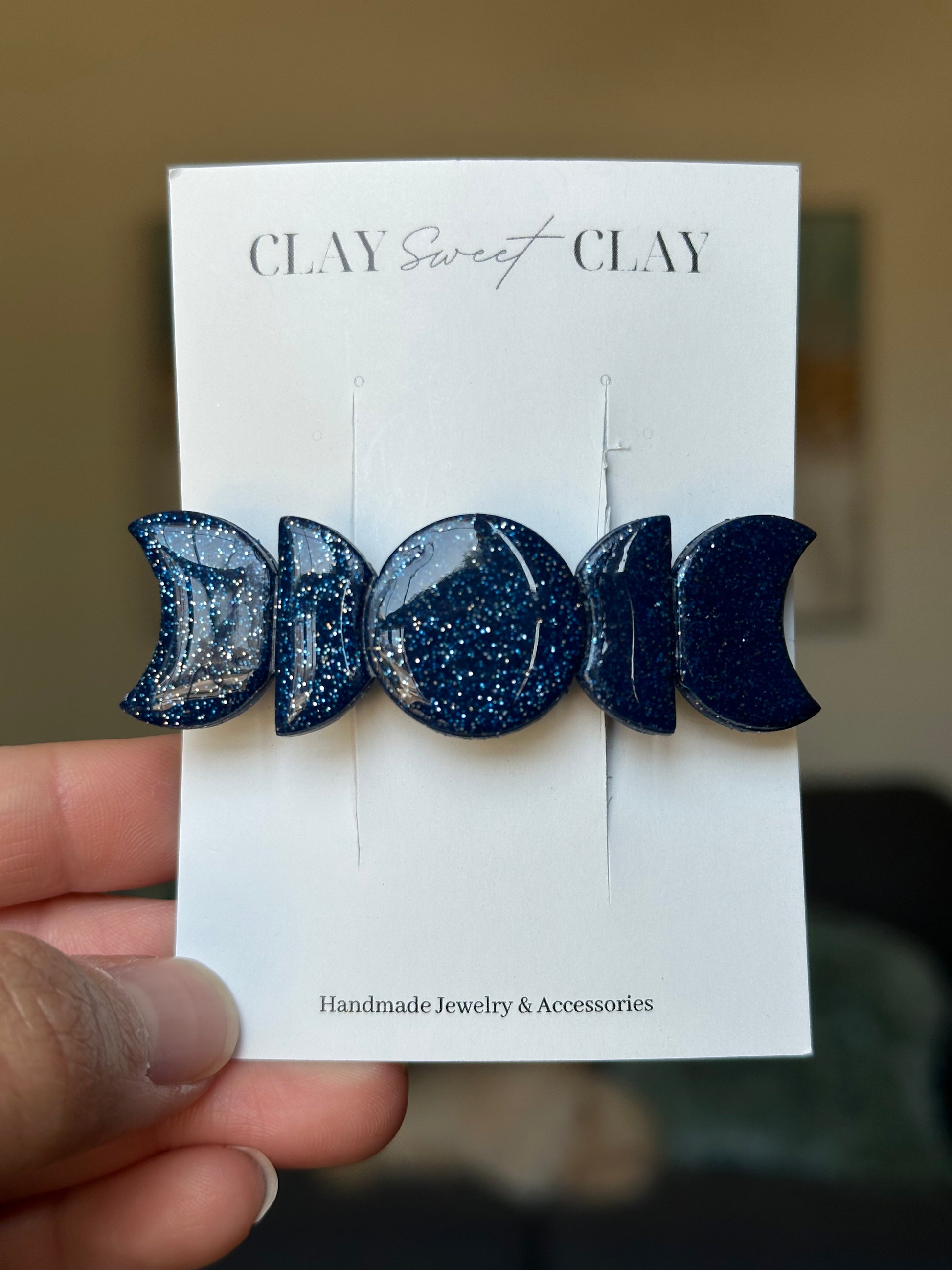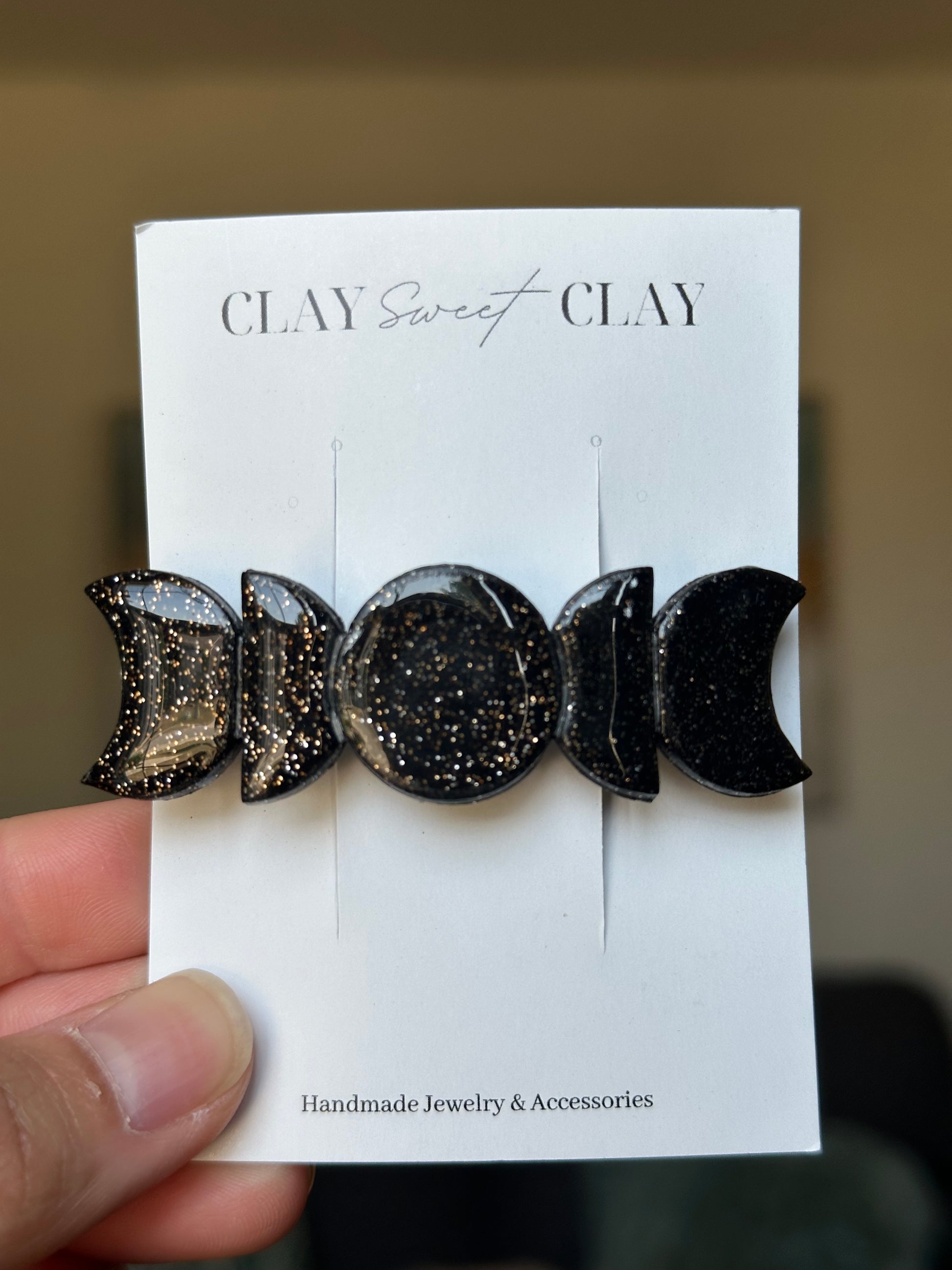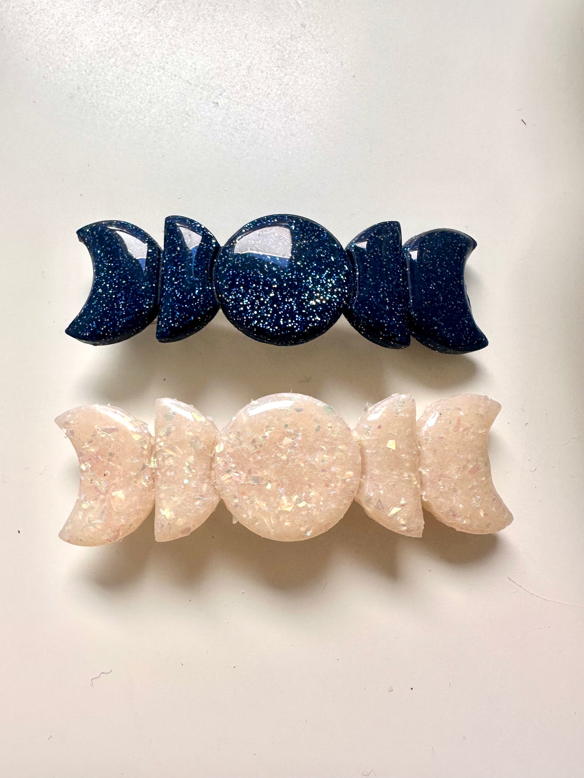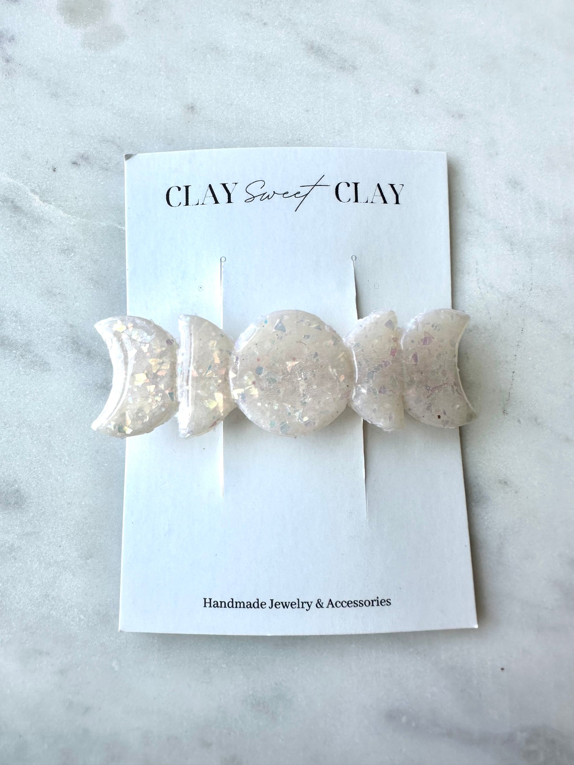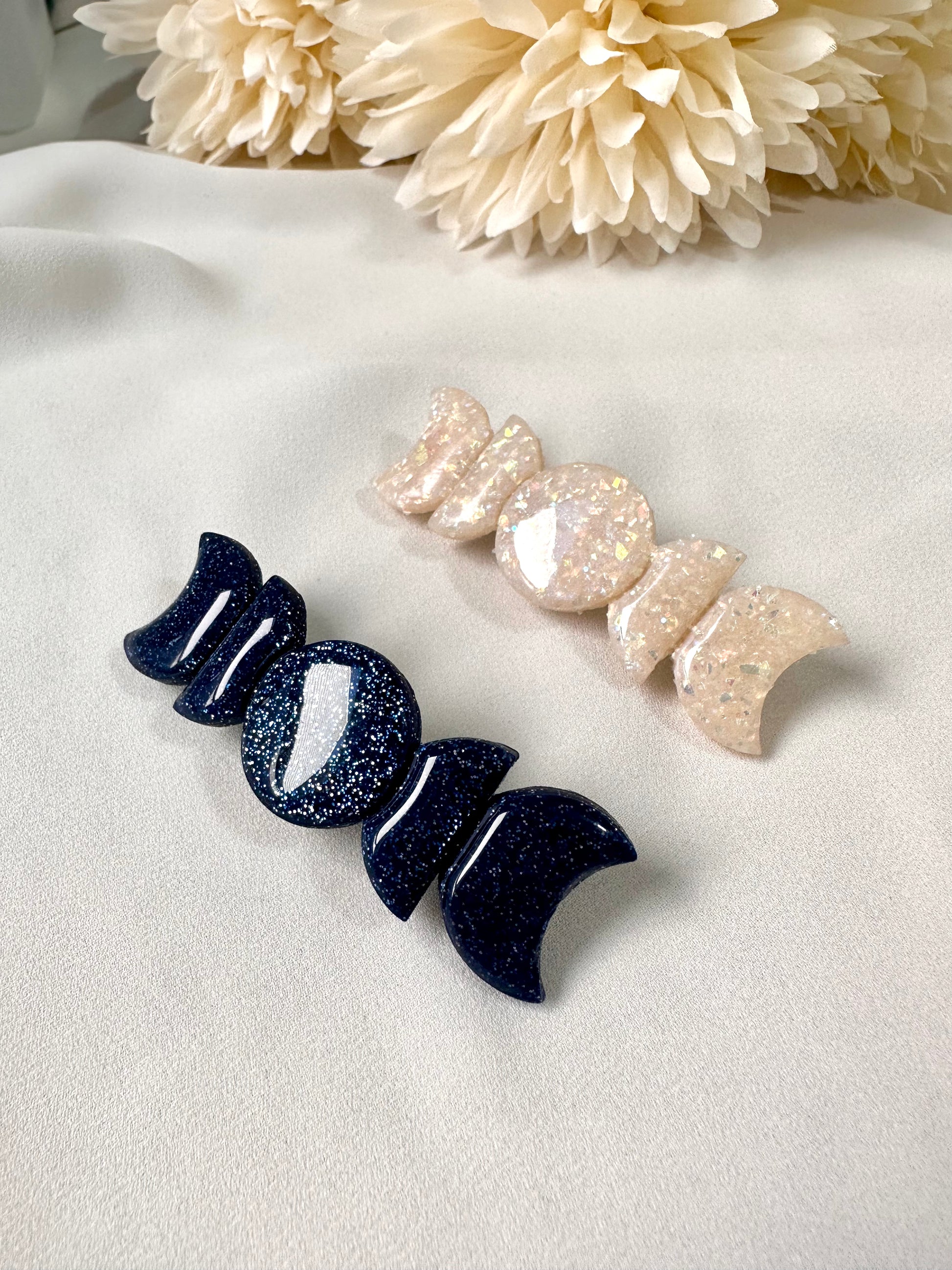 Embrace celestial vibes with our handmade moon phase hair barrette. This enchanting accessory adds a mystical touch to your hairstyle, perfect for those who love to shine with lunar-inspired beauty!