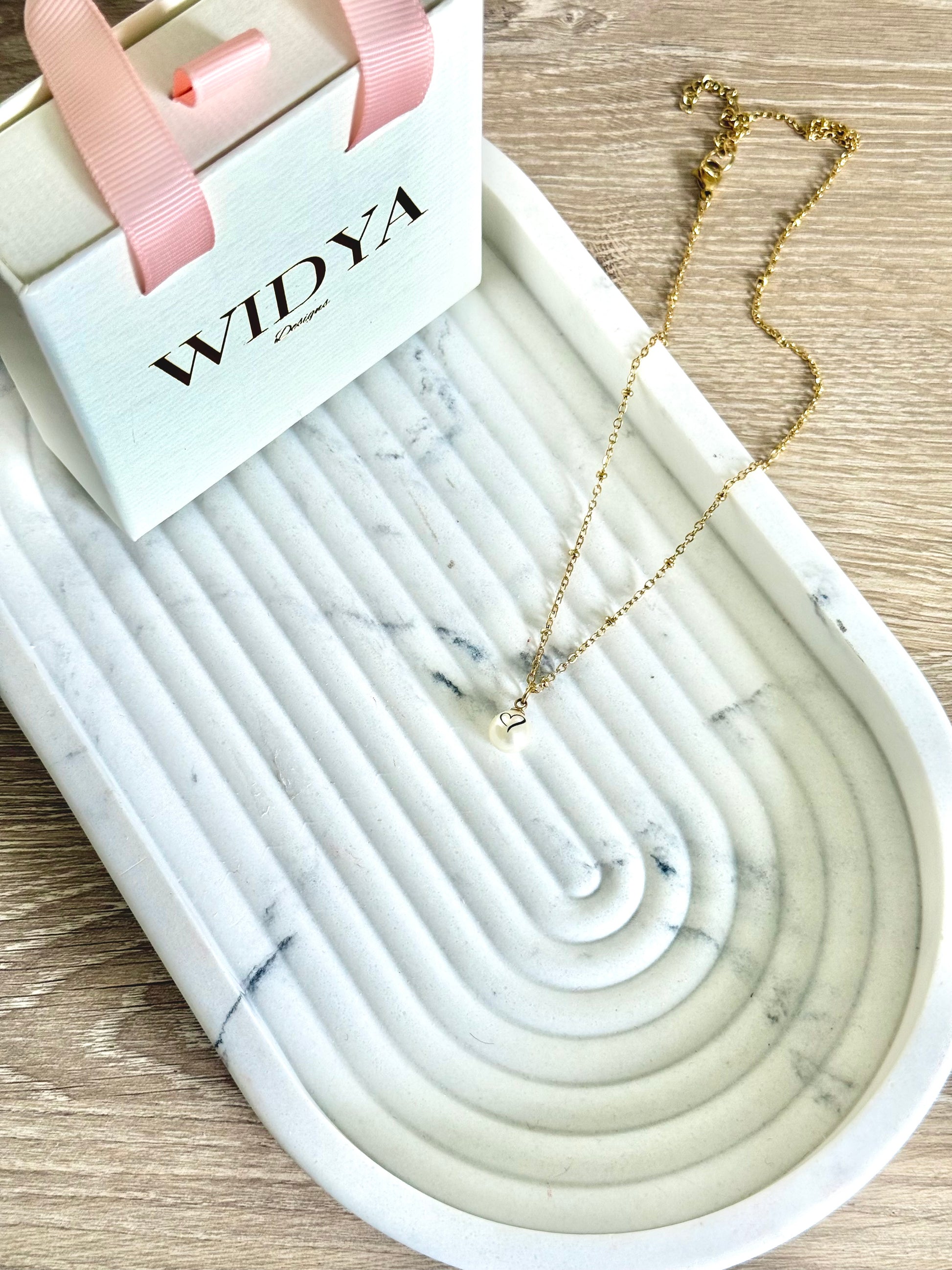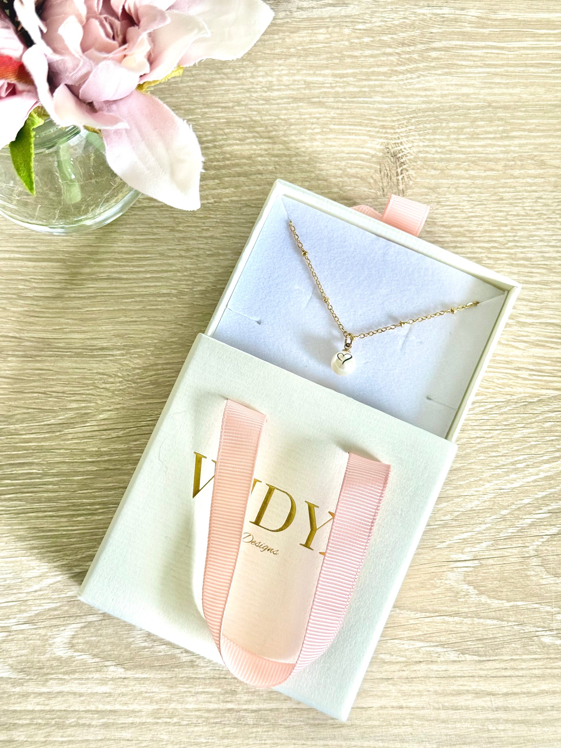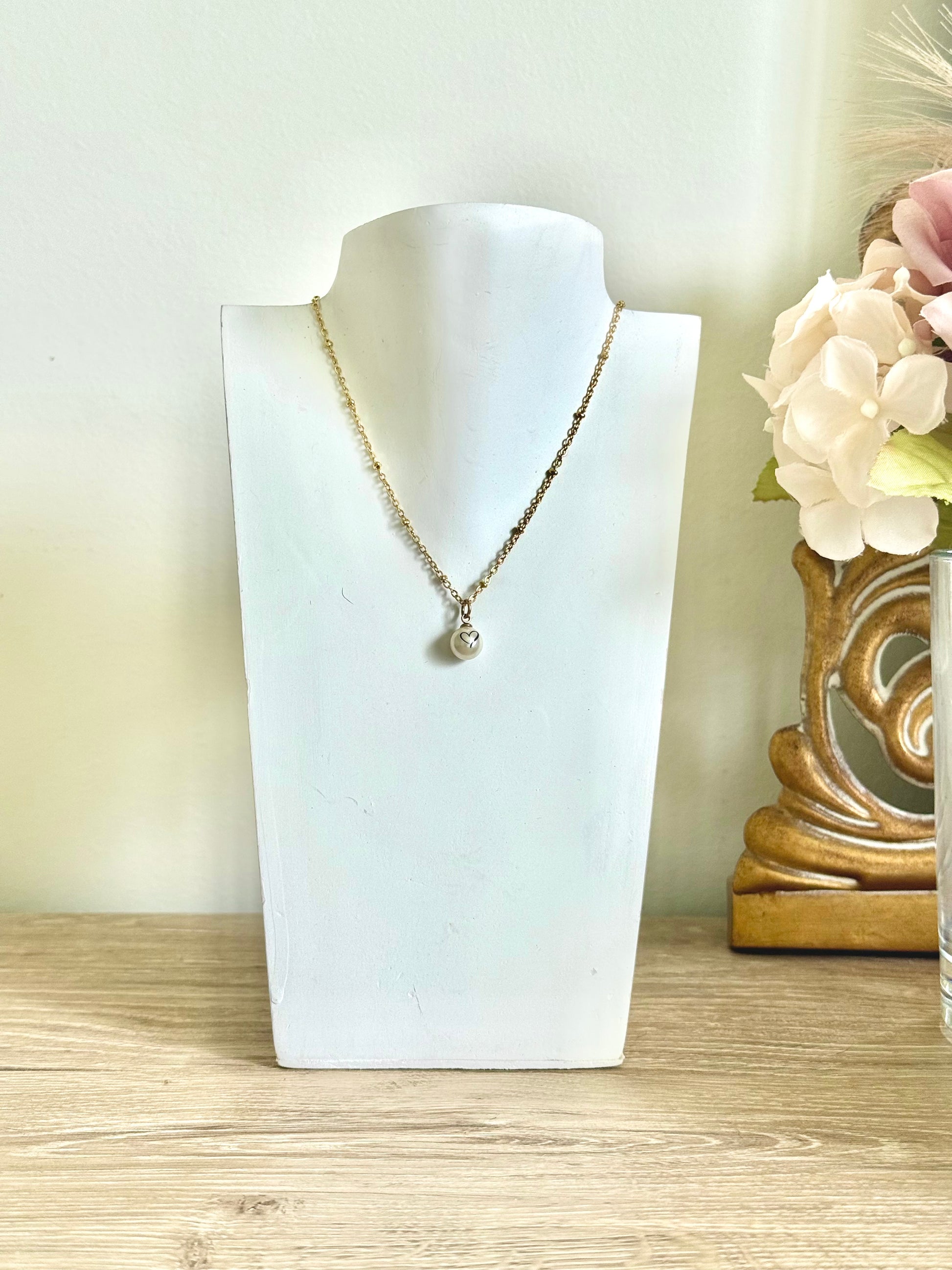 Romantic and timeless, this necklace features a luminous pearl pendant adorned with a delicate heart print. Paired with an 18K gold PVD stainless steel chain that’s non-tarnish, waterproof, and hypoallergenic, it’s a piece that blends classic elegance with a touch of charm—perfect for gifting or adding love to your everyday style.