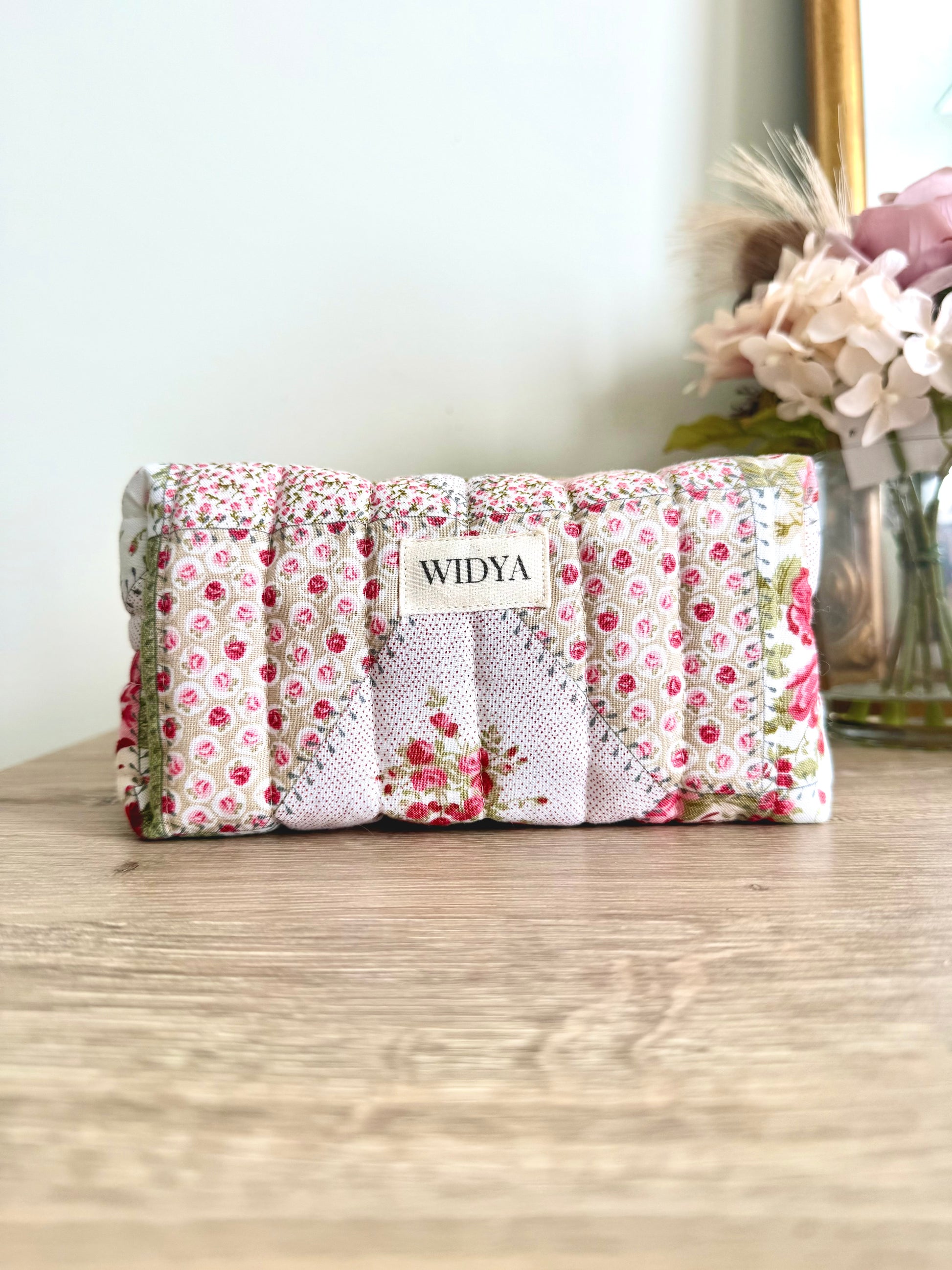 This charming bag features a soft mix of rose prints arranged in a sweet patchwork design, bringing a cozy, feminine touch to your everyday essentials. Light, pretty, and lovely for anyone who enjoys a hint of vintage floral charm in their routine.