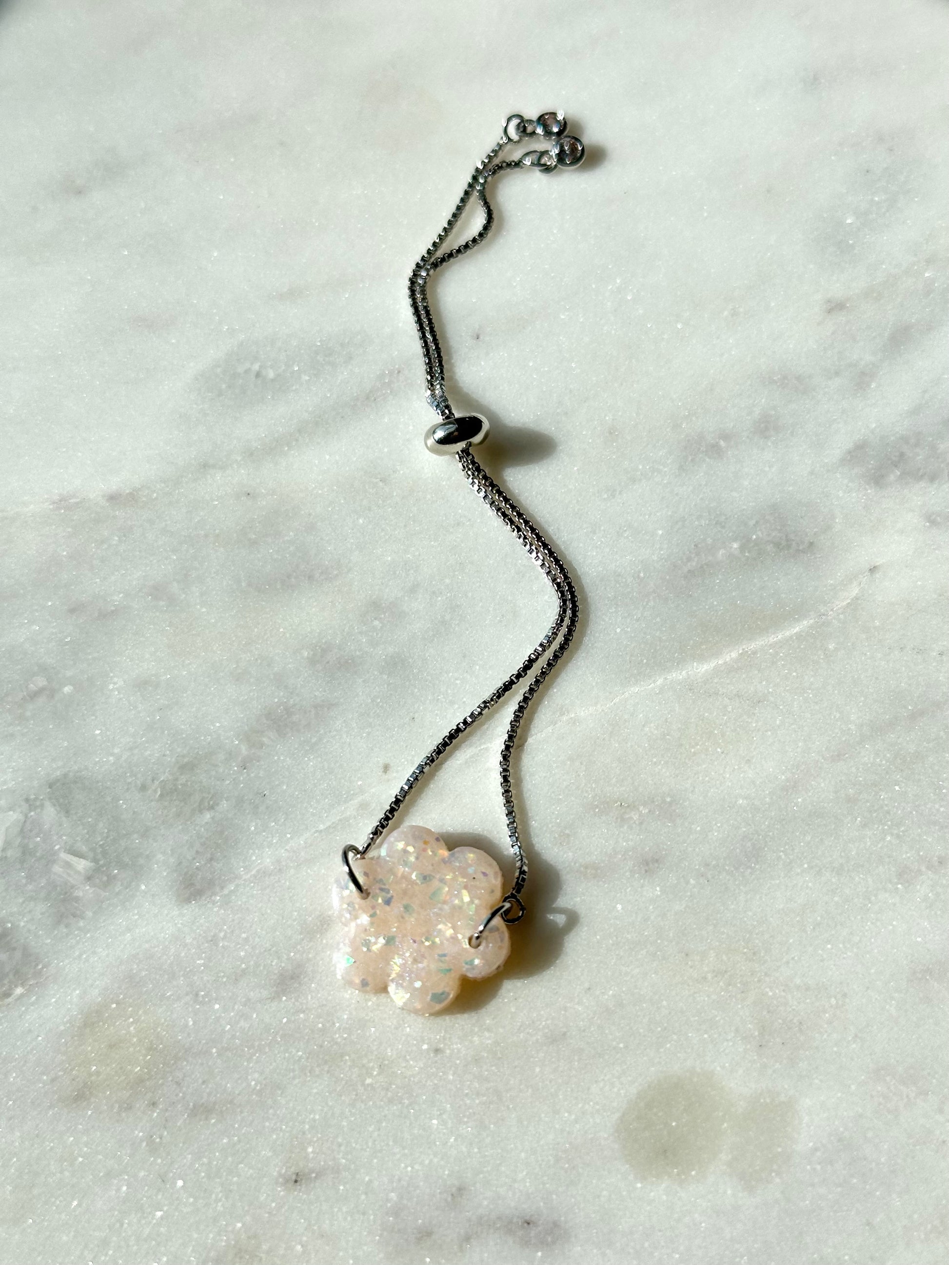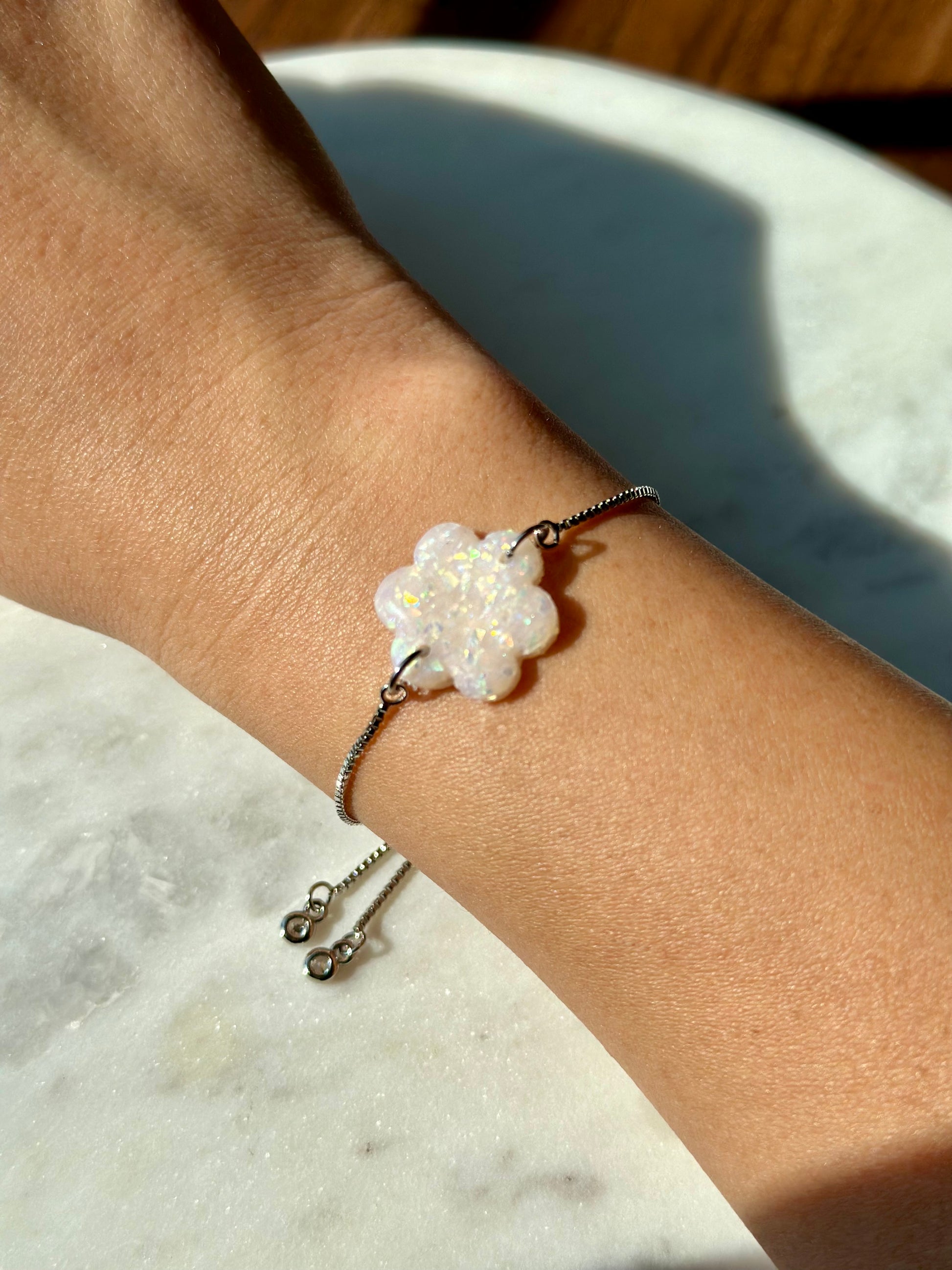 Delight in the charm of our pink opal flower bracelet, handcrafted from polymer clay to look just like real gemstones! This adorable accessory brings a magical sparkle to your wrist, perfect for adding a touch of whimsy and elegance to any outfit.